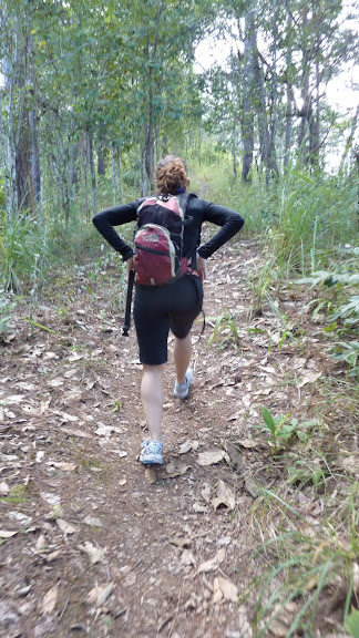 Perhaps halfway up, Rachel, Adon, and I were dropped off, and began hiking. The hike started on a paved road for a few minutes, but then we headed off onto single track.